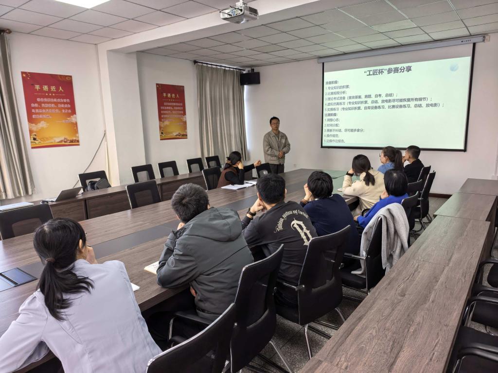 分享会上,魏兆辰、董鹏飞、李仕慧、张芳、郭鹏五位教师代表进行了成果汇报。他们结合企业实践中的行业前沿技术、岗位标准以及实际维修案例,详细分享了实践收获,并提出了切实可行的教学改进思路。每组代表汇报结束后,组内其他成员围绕产教融合、课程优化、实训项目开发等话题展开热烈讨论,大家各抒己见,现场交流氛围浓厚。随后,张玲聪老师分享了“工匠杯”“挑战杯”技能大赛备赛、指导及参赛经验,深入讲解竞赛要点、训练方法,阐述“以赛促教、以赛促学”的实施路径,为教学与竞赛工作提供了实用参考。