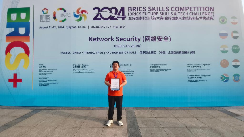 在刚刚落幕的2024金砖国家职业技能大赛网络安全赛项全国选拔赛暨国内决赛中,来自车辆工程系的付海洋同学以卓越的表现荣获二等奖。